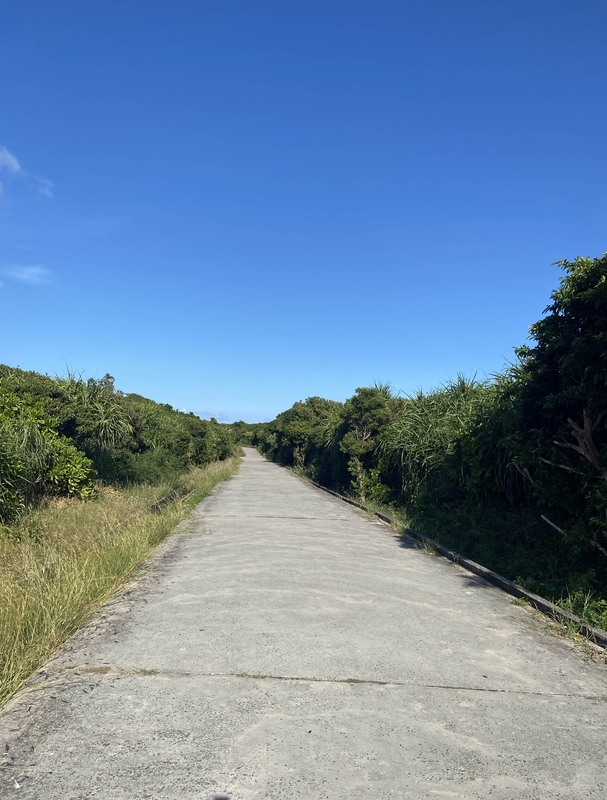 向こう方面に雨雲があるので雨が降ったみたい。久高島は良く晴れていましたが、そんなに離れていないこの近辺では道路が濡れていて通り雨が降ったよう。